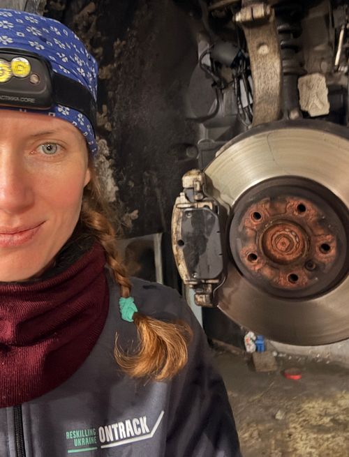 Після навчання спершу я подавалась на роботу по обʼявах, які нам давали організаторки курсу, але проблема була в тому, що я продовжую їздити на схід по гуманітарній чи волонтерській діяльності. Великим компаніям це складно поєднати із постійною зайнятістю у них. Тому тоді я почала питати СТО, які знала, шукати по знайомих - так і знайшла.